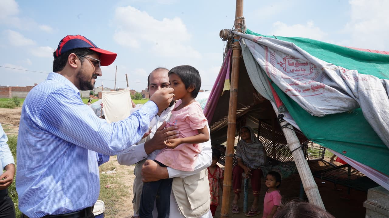 Students visit flood victims’ camps and distribute food and rations to affected families